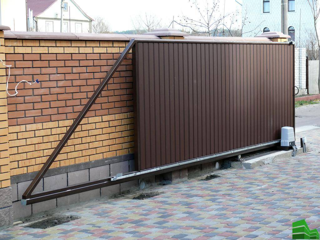 Простота и надежность — основные характеристики данной конструкции. Передвижение рельс осуществляется по специальном рельсе, которая монтируется поперек въездной части. Движение осуществляется за счет специального роликового устройства. Если зимы достаточно снежные устанавливать подобные ворота не целесообразно. Это связанно с тем что при засорении рельсы движение полотна ограничивается. В следствии необходимо постоянно проводить чистку территории. Подходит для регионов с теплым климатом. Преимуществом можно назвать экономию места, поскольку при открывании вдоль забора потребуется площадь только на ширину самого полотна без дополнительных конструктивных элементов.