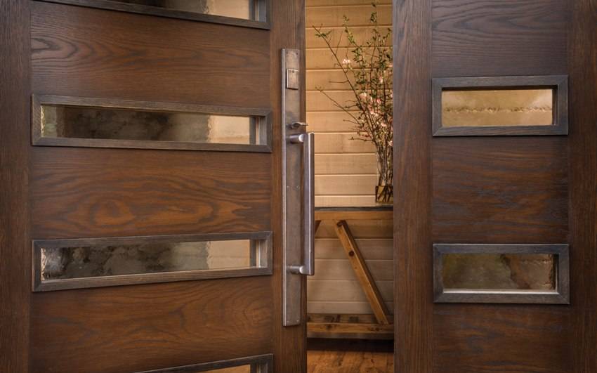 В подавляющем большинстве случаев входная дверь имеет большую ширину, чем все остальные проемы в доме. Что же касается конструкции, то она может быть самой разнообразной, и в данном вопросе единственное ограничение – это фантазия производителя. Наиболее популярными материалами для изготовления входных дверей считаются металл, дерево и МДФ.