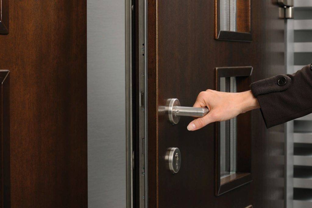 Иногда проблема самостоятельного открывания межкомнатной створки решается намного легче. Необходимо вставить ключ с замком, если предполагается, что бо́льшую часть времени она будет закрыта.