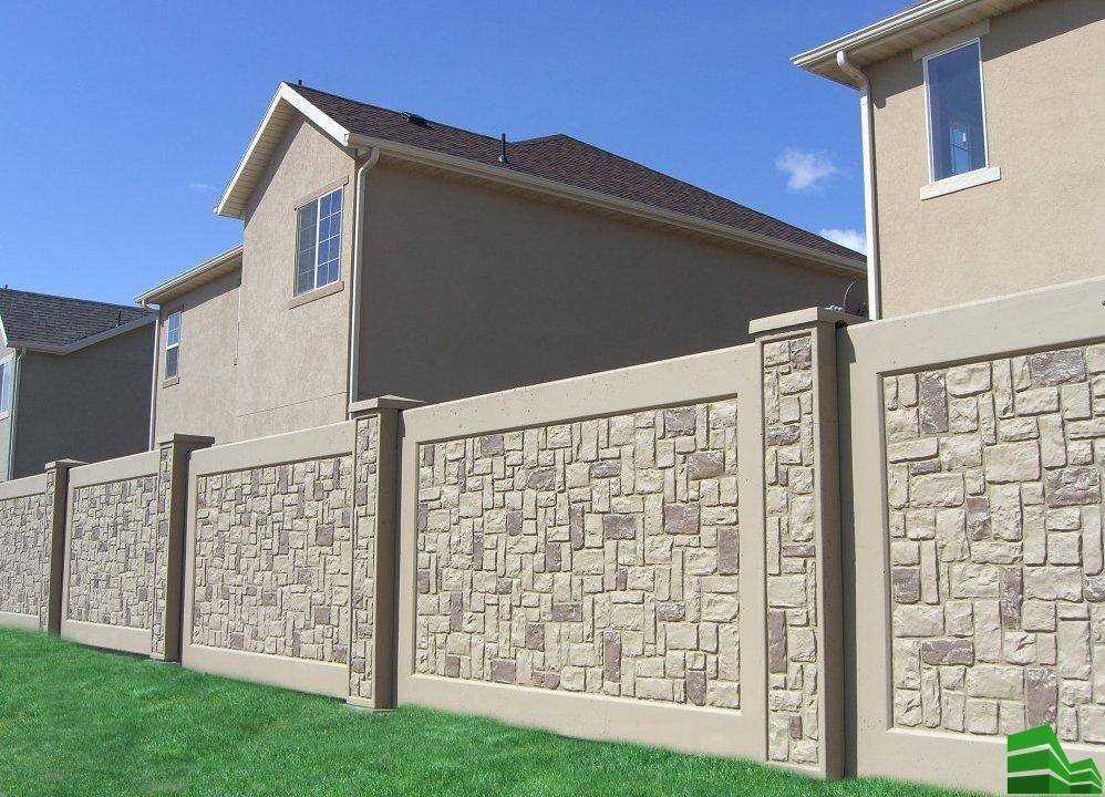Прочный и легкий в использовании вариант. На сегодняшний день можно выбрать любую палитру и фактуру. Это позволит уйти от скучного серого цвета бетона. У бетонного забора много преимуществ: