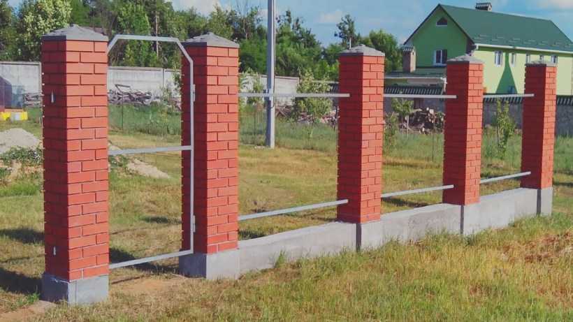 Еще одной проблемой, которая вполне актуальна для кирпичных заборов является ошибка, допущенная при строительстве опорных столбов, в особенности тех, к которым крепятся ворота. Подобные столбы имеют внутри своей конструкции металлический стержень. Обычно он имеет несколько выводов металлической основы на поверхность опорного столба. Такая конструкция ненадежна и может привести к повреждениям кирпичной кладки и дальнейшей необходимости ремонта, а для устранения этой проблемы потребуется полный демонтаж столба и перестройка заново при том условии, чтобы часть трубы (одна из сторон) выходила за пределы столба. Для того чтобы этого избежать, используют достаточно простой способ. Он предусматривает собой установку дополнительных креплений для ворот и позволяет усилить конструкцию кирпичного забора.