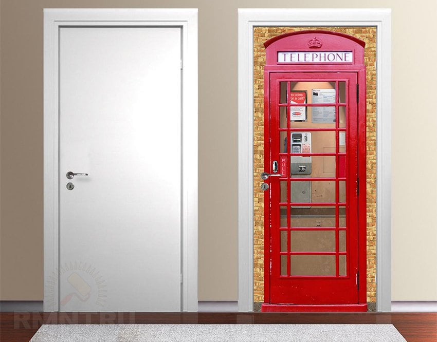 Как вам такой необычный вариант — дверь, с помощью фотообоев превратившаяся в телефонную будку?