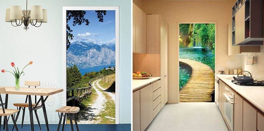 Зачастую наклейки могут выглядеть как обычные фотообои, а иногда — как ручная роспись на белой двери или детский рисунок