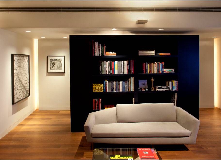 Преимущество перегородок, созданных в виде стеллажей в том, что их можно использовать в качестве системы хранения. В некоторых случаях именно эта опция становится определяющей в выборе мебели для интерьера, даже без необходимости создания ограждения того или иного функционального сегмента. Не перечислить всего, что можно хранить на полках стеллажа – от традиционных книг до предметов коллекционирования.