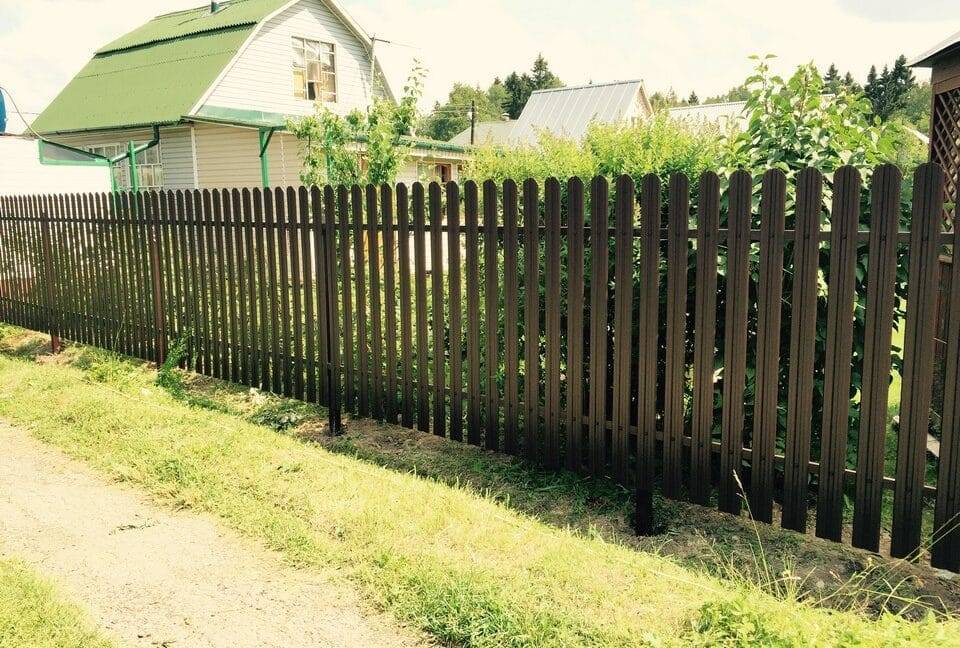 Поликарбонат обойдётся чуть дороже, при этом он ещё и не является вандалостойким материалом. Следующим по возрастанию является евроштакетник – от 2500 за погонный метр. Есть также другие лёгкие виды заборов, стоящие примерно столько же.