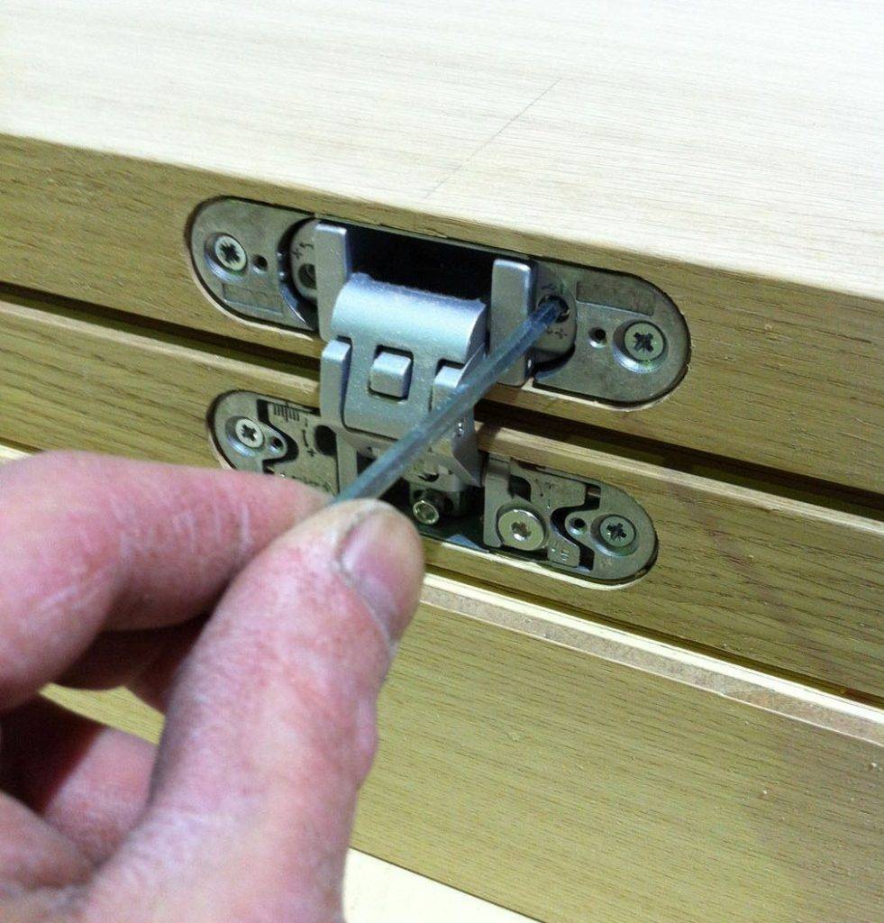 После завершения установки необходима правильная регулировка скрытых петель. Поэтому давайте разберемся, как ее сделать.