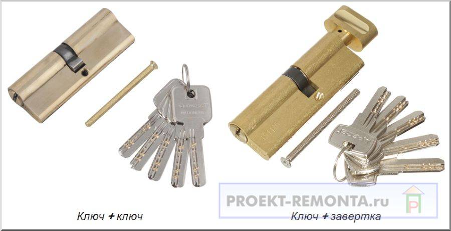 - Ключ плюс ключ – вариант, когда с обеих сторон вставляются ключи, хорош тем, что если вы всунете ключ изнутри, снаружи замок уже не откроешь;