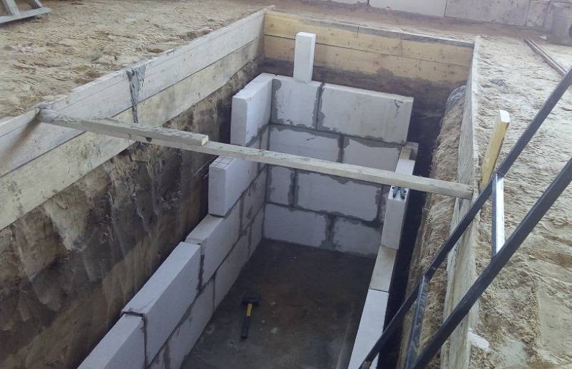 Ширина канавы выполняется на триста миллиметров больше итоговых габаритов, для обеспечения укрепления стенок;