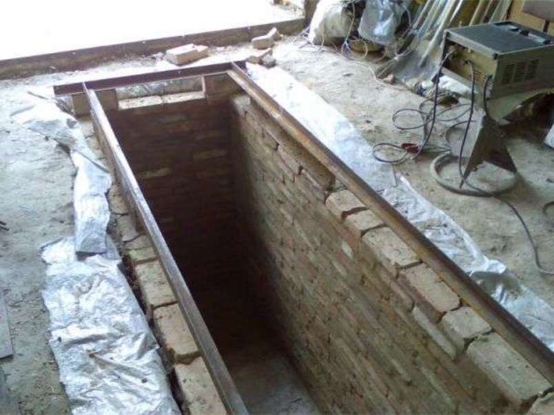 fidel1970 советует выкладывать стены ямы в один кирпич («так надежней, да и ниши для инструмента и освещения легче делать»), а сверху сделать обвязку металлическим уголком. Также форумчанин рекомендует вместо земли засыпать пространство глиной.