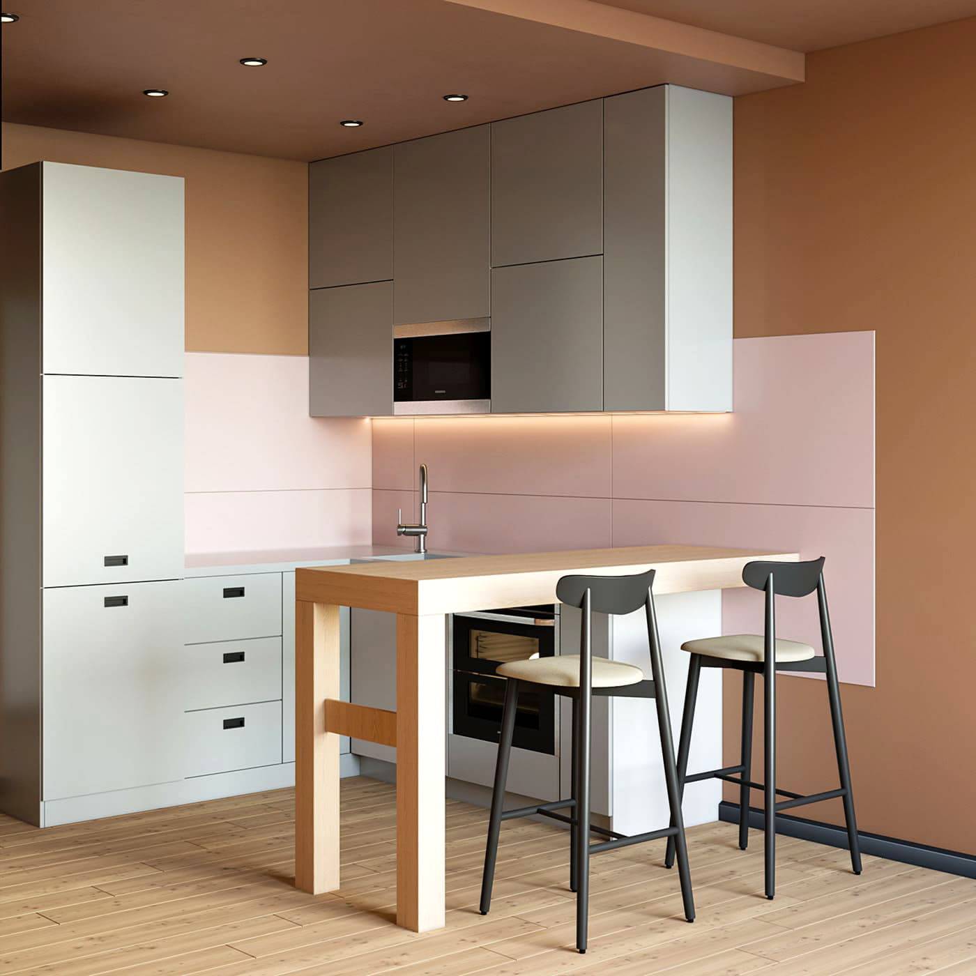 - Выбирая отделочный материал, предпочтение отдавайте поверхностям легко моющимся. Помимо этого, они должны иметь высокую стойкость к возгоранию и не впитывать запахи.