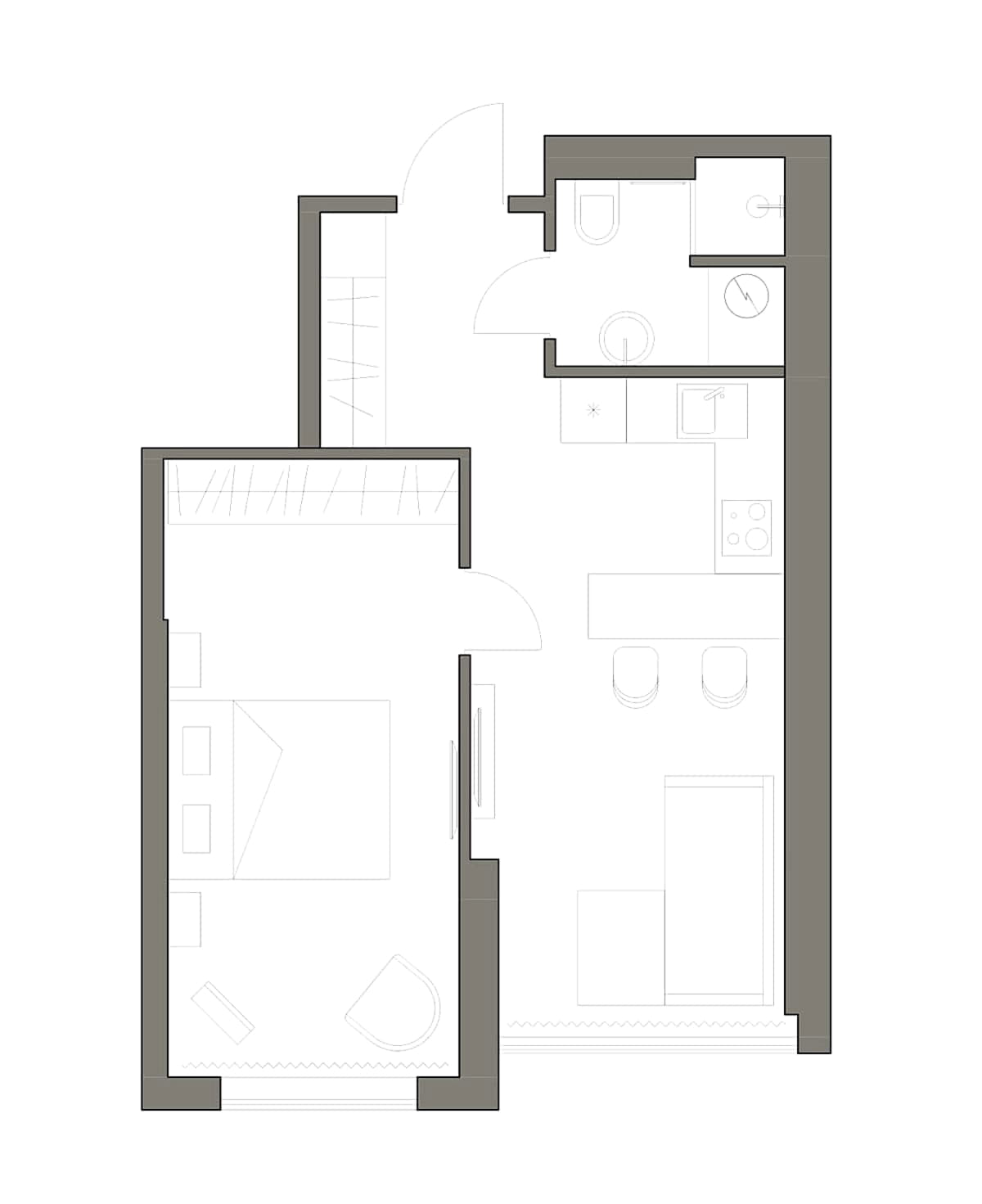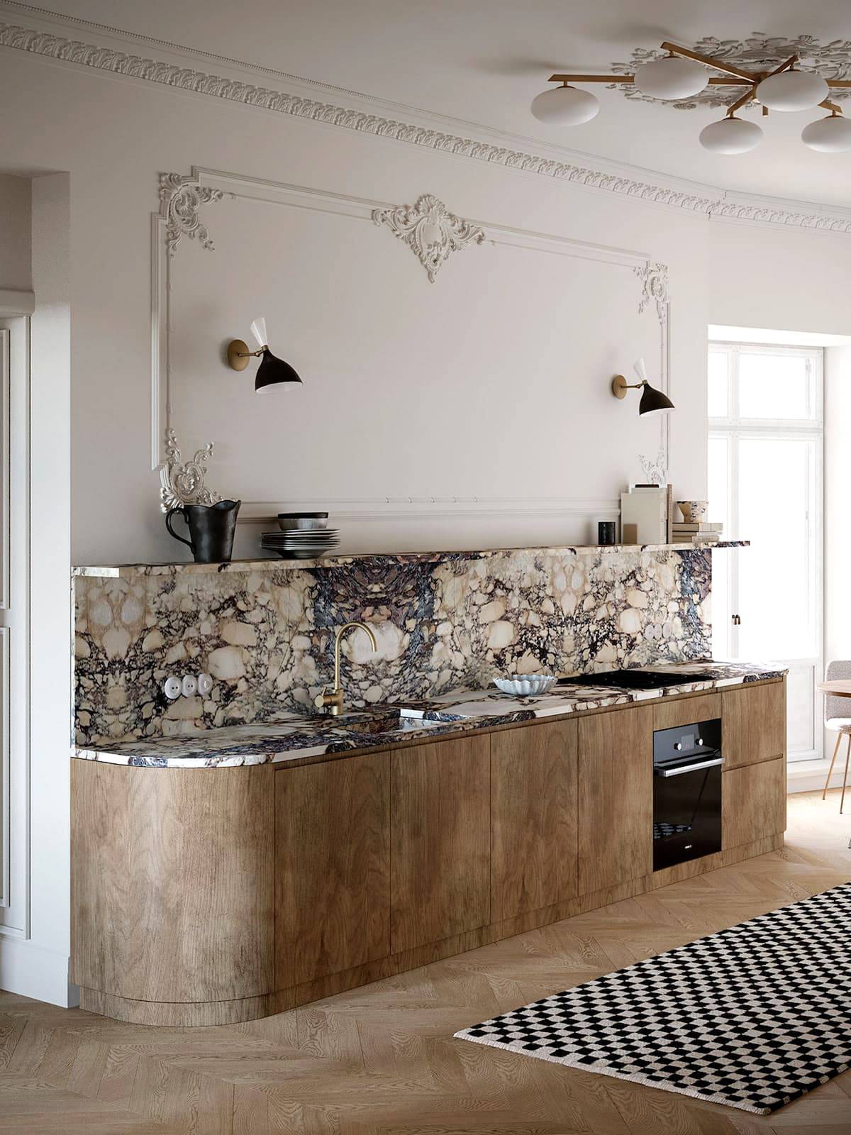 Это универсальный вариант, который использует классические сочетания материалов и цветов. В нем не будет никаких ярких неожиданностей, но именно этим он и хорош. Подходит для спокойных и уравновешенных людей, а также прекрасно будет выбрать его для пожилых или семейных пар.