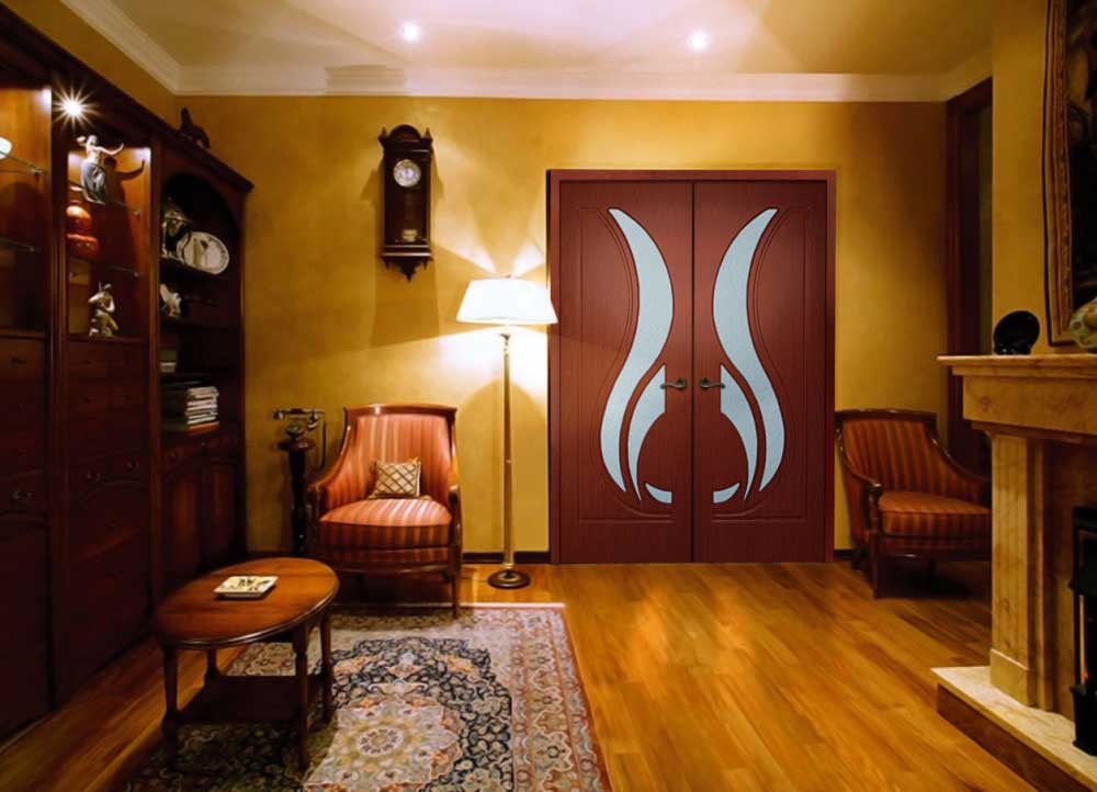 Такие изделия смотрятся потрясающе. Это самая настоящая классика дизайна. Хорошо вписываются в классический интерьер белые и нестандартные двери, помогая освежить интерьер. Натуральный шпон дуба, как и его массив, отличается одним из самых высоких показателей прочности. Красное дерево ни в чем не уступает, а смотрится гораздо эффектнее.