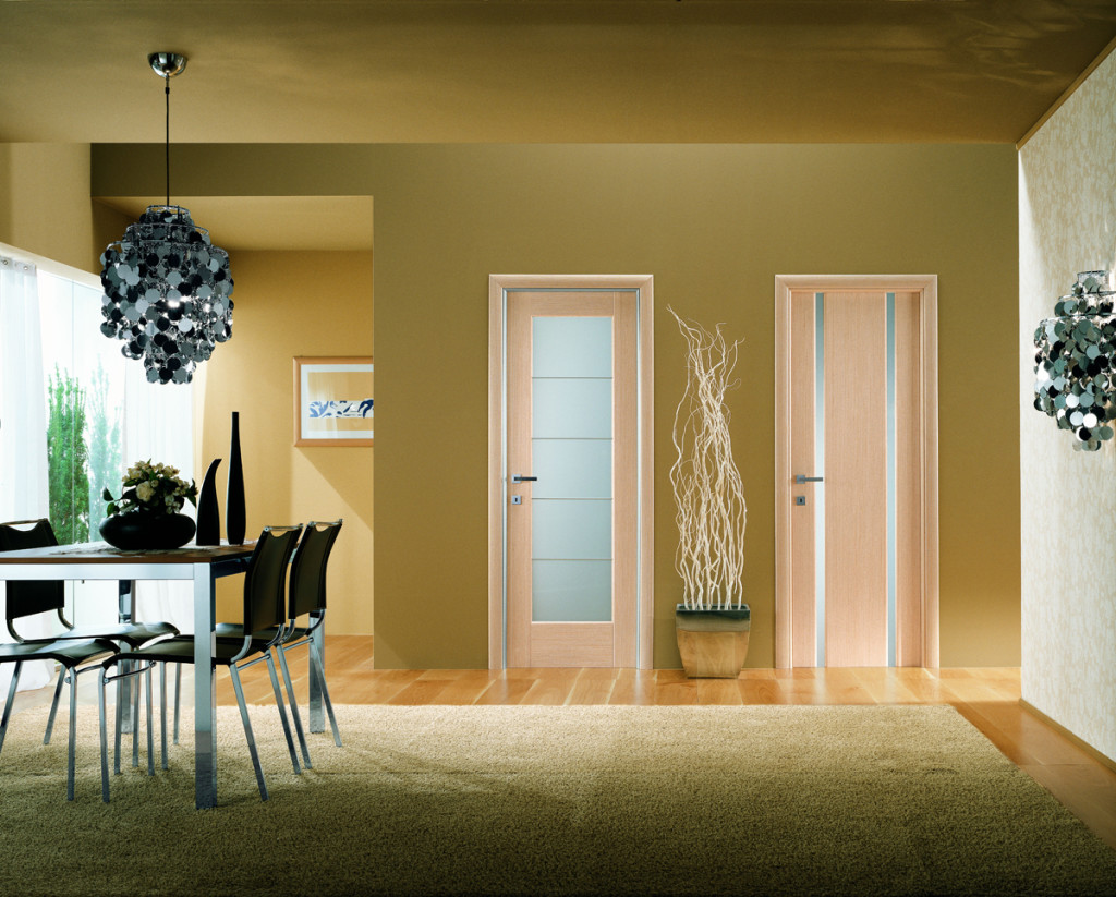 Еще один важный критерий выбора – стиль интерьера. Двери отличаются по форме, которая может быть строгой прямоугольной или со сглаженными углами, с филенками или без, со стеклянными или металлическими вставками. В классическом интерьере хорошо смотрятся глухие и остекленные модели со сглаженными углами, в современным – с металлическими вставками и четкими пропорциями, черным стеклом и глянцевые белые. Цвет полотна зависит от вкусов покупателей. Ясень, дуб, бук – это классика, которая одинаково хорошо смотрится в строгом или современном интерьере.