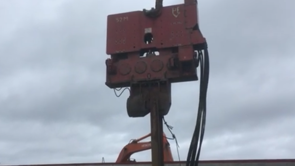 - погружение с помощью вибрации. В этом случае, погружение конструкций происходит с помощью специальных устройств – вибропогружателей. Использовать подобную технику для монтажа шпунтов рекомендуется на песчаных и сухих типах грунтов;