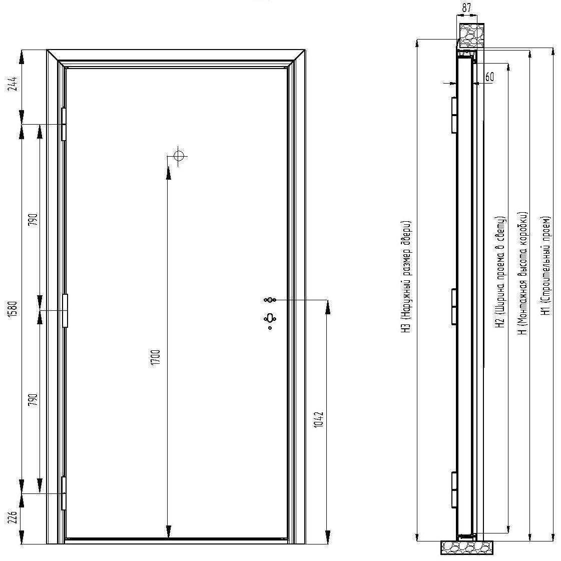 Стандартные размеры входных металлической двери зависят от внутреннего устройства. Если ребра жесткости сделаны из толстого металла, а теплоизолятора положено чуть больше, то и двери получатся толще.