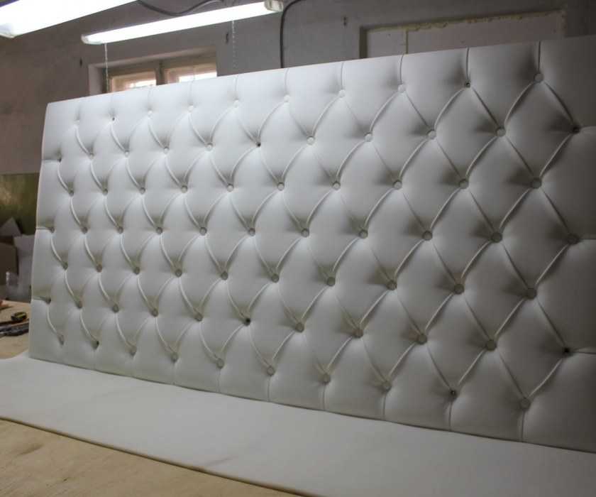 Ткань или кожа для обивки, критерии подбора которой подробно описаны выше. Также, следует добавить, что материал имеет множество складок, из-за чего в конструкции стены или панно его требуется гораздо больше – на 30% – 40%, чем общая площадь будущего изделия.