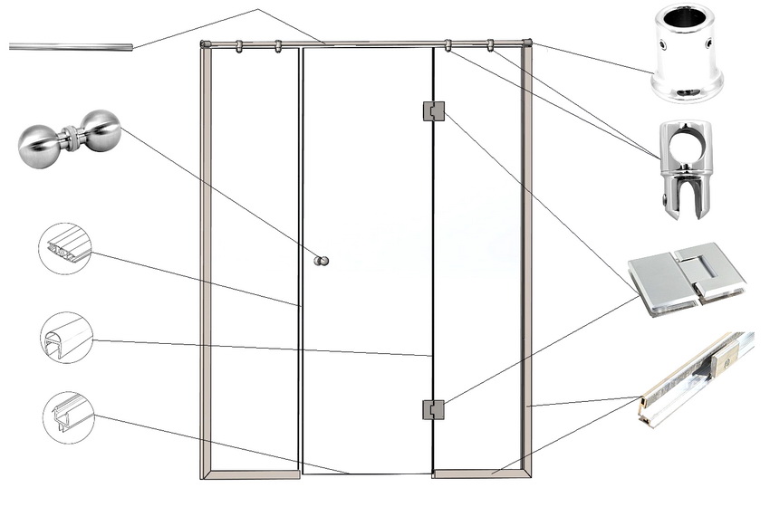 Необходимые компоненты для монтажа душевой перегородки