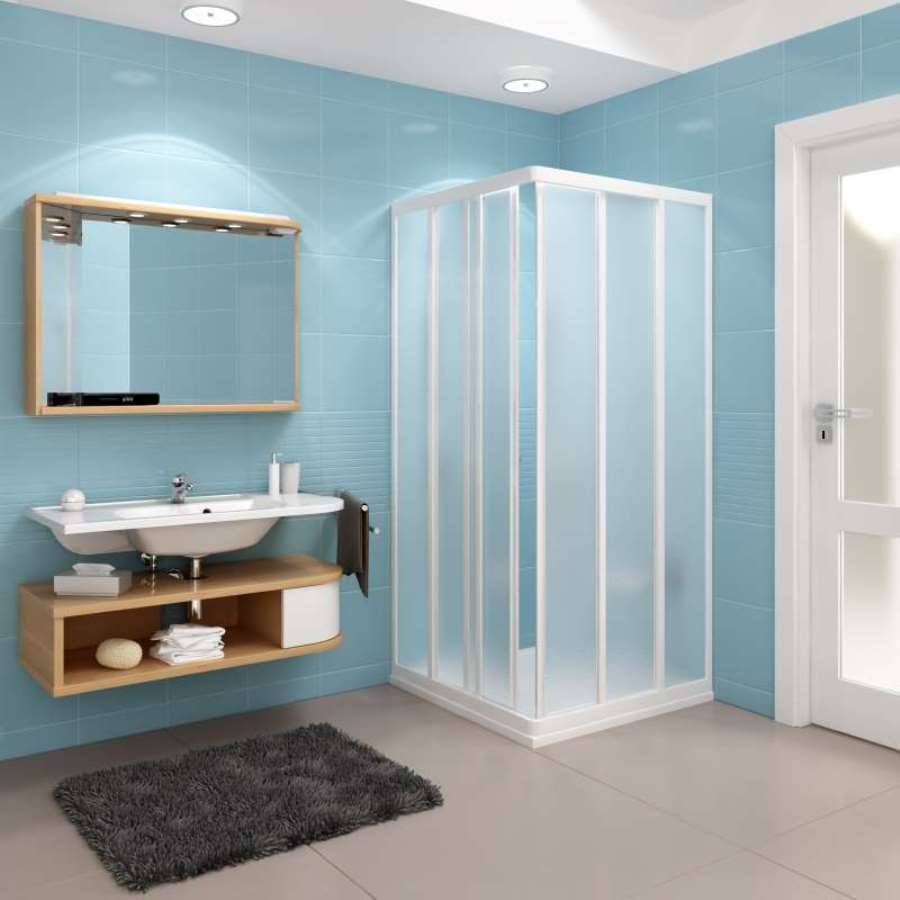 - Складные. При их открытии вам не понадобится много места, поскольку на петле будет поворачиваться лишь одна створка. Причем поворачиваться она может в обе стороны. Используется как одна панель, так и несколько, которые складываются в виде веера. Если за ними следить плохо, то они могут начать заедать. Прекрасно подходят для небольших ванных комнат.