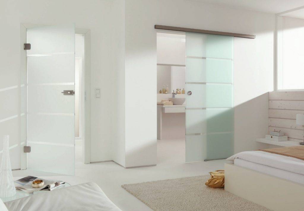 Как и любая дверь, стеклянная конструкция имеет короб и само дверное полотно. Оно может быть выполнено в виде целого листа стекла вообще без рамы, только с крепежными элементами и ручками для открывания. Не менее популярный вариант – это вставки из стекла. Этот материал отлично сочетается с деревом и шпоном, ДСП, а также пластиком и металлом. Для межкомнатных перегородок применяются листы толщиной от 6 мм, для более прочных конструкций толщина материала может доходить до 20 мм.