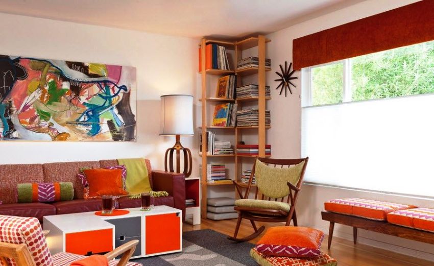 Также вы можете сделать стеллаж настоящей изюминкой интерьера, так сказать ярким его акцентом. Для этого выбирайте мебель яркого цвета, контрастного к остальному интерьеру или же сделайте ставку на необычную форму и фактуру изделия.