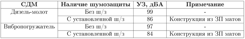 Эффективность приведенных выше конструкции из звукопоглощающих матов для снижения внешнего шума от шумовиброактивных источников СДМ составляет 13 дБА. Разработанная конструкция позволит дополнительно снизить уровень шума на строительных площадках на наиболее шумном этапе производства работ.