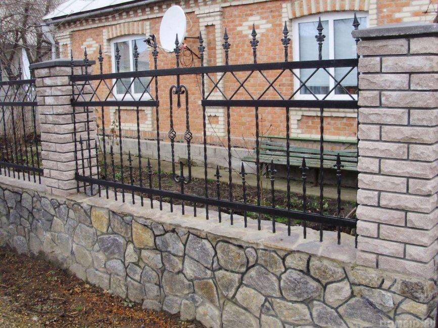 Обычно из кирпича сооружают столбы, фундамент и другие несущие конструкции. Профилированные листы, штакетник, металлические сварные или кованые конструкции используют для изготовления секций.