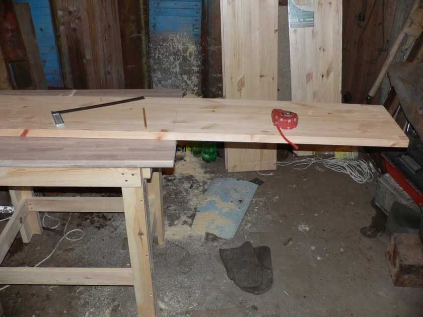 - В роли основного материала подойдет обычная доска, которая осталась от ремонта. Ширину стоит подбирать индивидуально, исходя их предметов, которые будут размещаться на ней и того места, где он будет установлен.