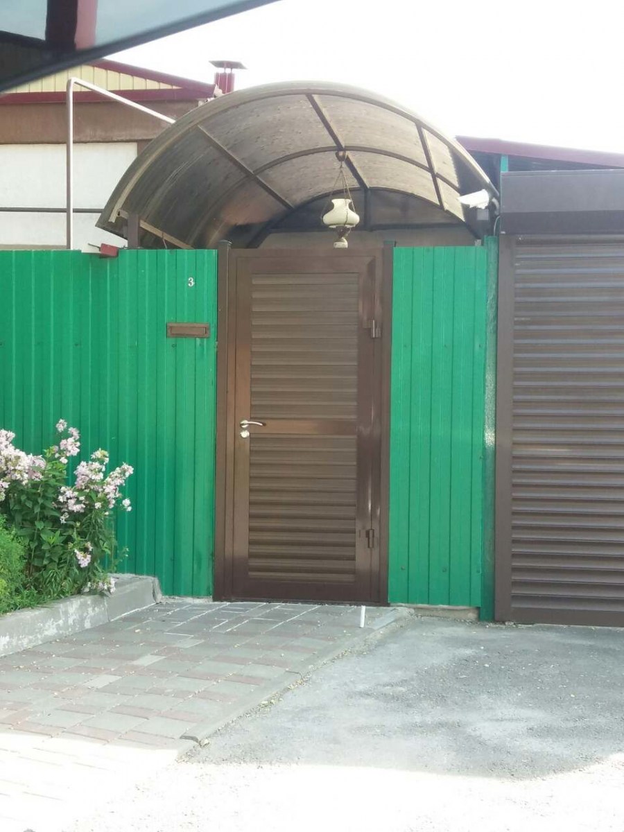 Опытный мастер, набивший руку в ремонтных или строительных работах, может «замахнуться» на калитку в виде арки. Такая калитка для забора из профнастила отличается сложностью изготовления, но зато очень стильно и эффектно смотрится.