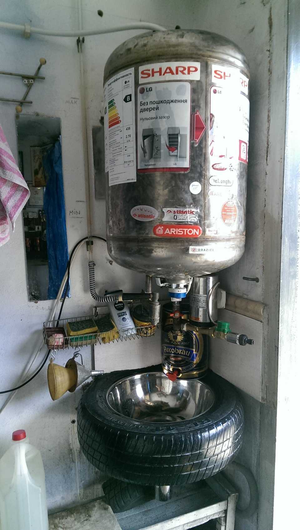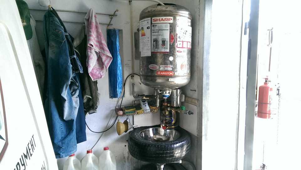 Классно! Осталось прикрутить мощщщный кипятильник. что бы зимой была теплая вода! Хотя, скорее всего, в данном гараже имеется чайник…