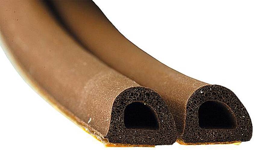 - В случае, когда размер щелей больше 3 мм, то нужно покупать материал из резины. Его форма может быть разная, что определяется толщиной. Самые тонкие до 3 мм имеют вид профиля Е или К (напоминают эти буквы в сечении). Если зазор до 5 мм, то следует остановить свой выбор на P или V-образных изделиях. Профили в форме букв D или O используются для самых больших зазоров от 5 до 7 мм.