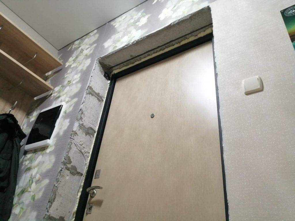 - Финишная отделка дверного проема начинается после полного застывания пены по периметру коробки. Тем самым исключаются возможные смещения конструкции при работе.