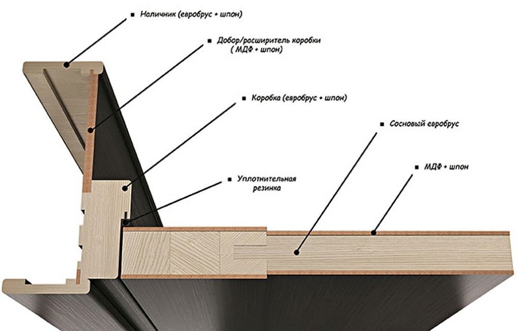 Обычный дверной блок состоит из двух элементов – полотна и коробки.