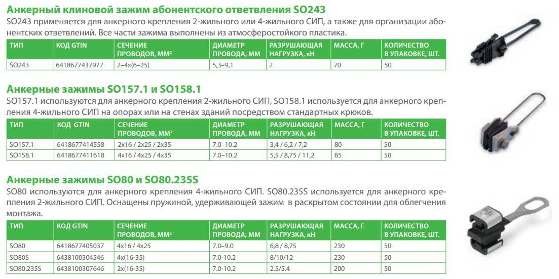 Еще один из вариантов – использование специальных дистанционных зажимов или бандажей. Вот их марки и характеристики с размерами под СИП: