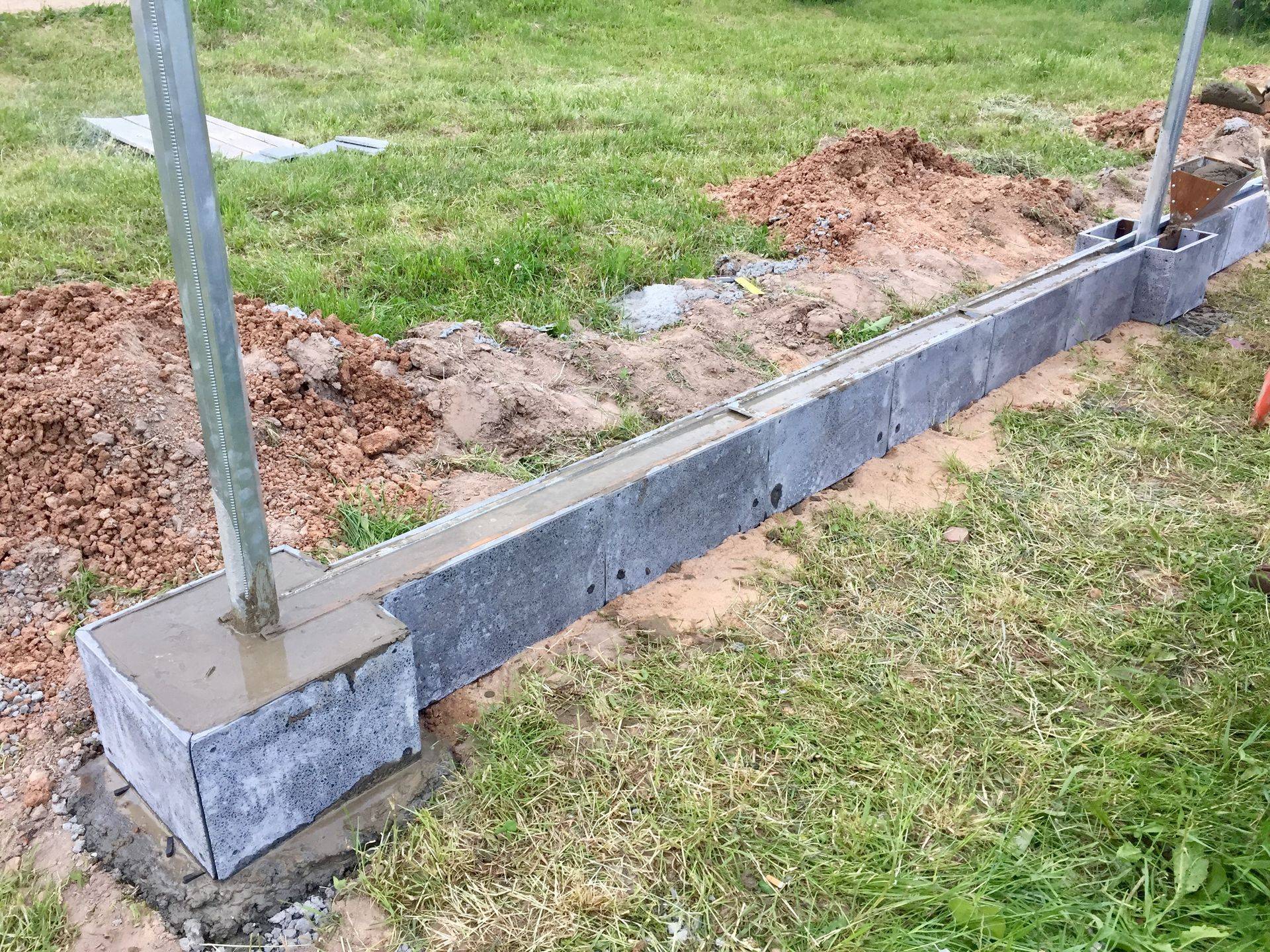 - Закладка фундамента. Этот же пункт фигурировал при перечислении достоинств. Это не ошибка. Здесь все зависит от веса составляющих частей забора. Если итоговая масса конструкции будет большой, без обустройства фундамента не обойтись.