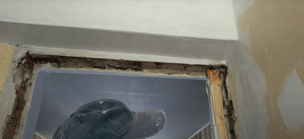 - Проём очищается изнутри и, при необходимости, мастер изменяет его габариты.