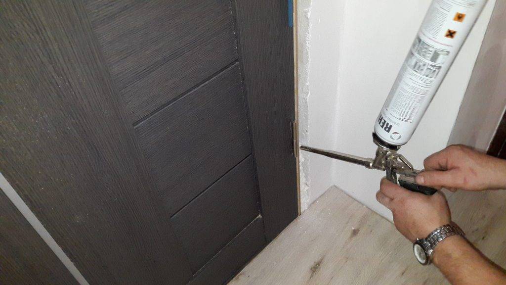 Если же все в порядке, то можно заполнять пеной пустоты между дверной коробкой и стеной.