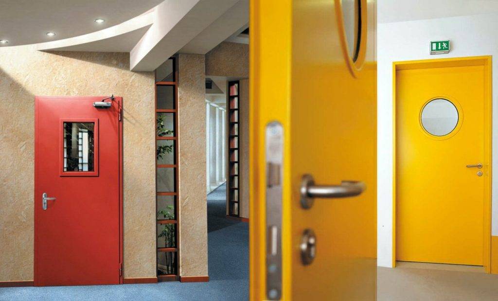 Как правило, это серый, белый, красный, реже – коричневый, синий цвет. Такие же незамысловатые двери подойдут для технических помещений, складов, выходов по лестницам в чердаки для административных, офисных зданий, учебных или лечебных учреждений.