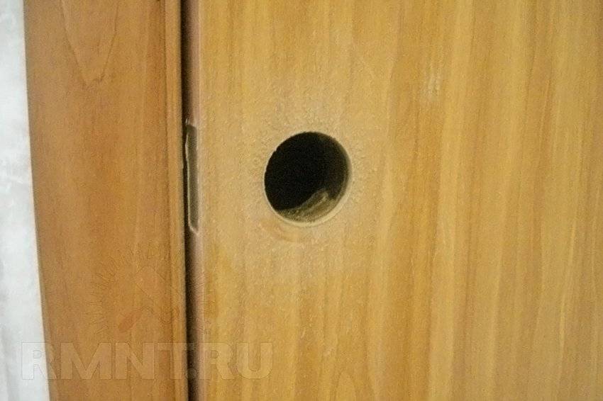 Данная процедура может быть выполнена фрезером с фиксируемой станиной. Как правило, каждый профессиональный установщик дверей имеет при себе этот агрегат для устройства как круглых, так и прямоугольных проёмов под фурнитуру.