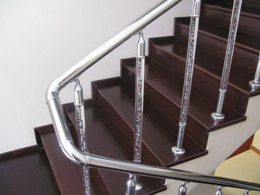 Хромированные перила. Они, так же как и алюминиевые, продаются в магазинах отдельными деталями или полной конструкцией. Единственный минус такого материала – быстрое стирание.