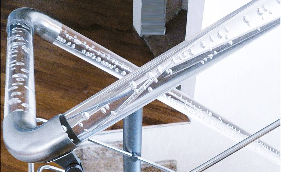 По показателям прочности полиметилметакрилат превосходит акриловое стекло в 11 раз. Изготавливают оргстекло методом экструзии или литьевым способом. Также таким способом изготавливают отдельные балясины и поручни.