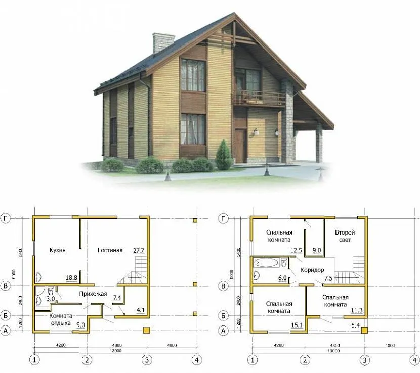 Классический двухэтажный каркасный дом – подходящее решение для рассрочкиИсточник projectstroy.com