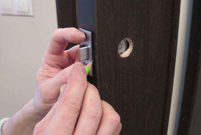 Как вставить замок в межкомнатную дверь: разметка без трафарета