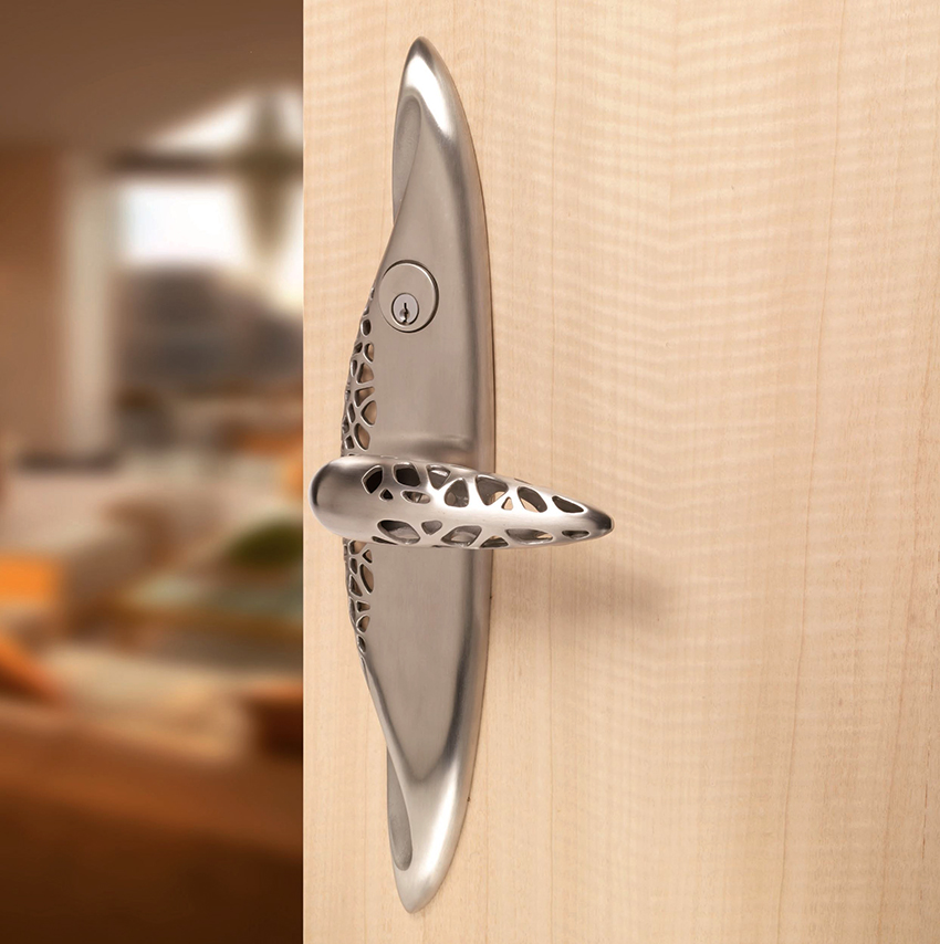 Когда кончик перьевого сверла покажется с противоположной стороны, сверление нужно прекратить и продолжить с другой стороны.Установка ручек на двери своими рукамиТеперь, когда все отверстия готовы, можно заняться сборкой и установкой замка и ручек на двери.