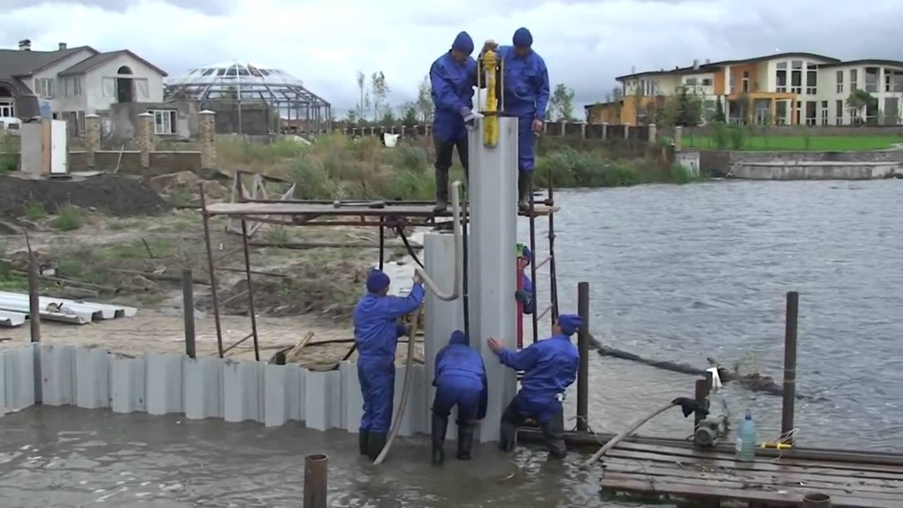 Здесь важно обеспечить равномерность размыва, иначе свая будет отклоняться от вертикали. Для этой технологии имеется запрет — если поблизости находятся здания или сооружения с возможностью проседания из-за размыва грунта, проводить подобные работы запрещается.