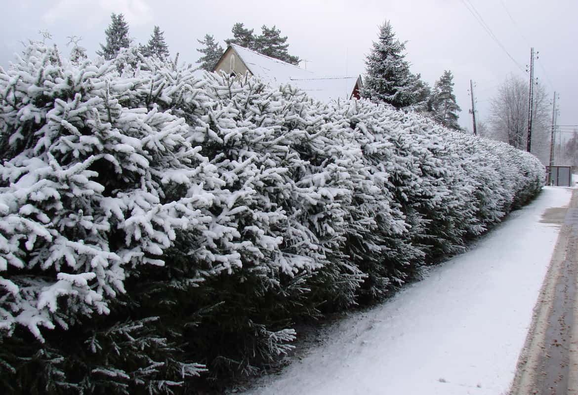 Зачастую при посадке живого забора садоводы применяют сосну, ель, тополь, осину или даже кипарис взятые из естественной среды. Взрослое дерево достигает до 5 метров в высоту, а это значит, что утром и вечером их тень будет ложиться на культурные растения. Это будет нарушат, и ухудшать цветение и плодоношение огородных культур.