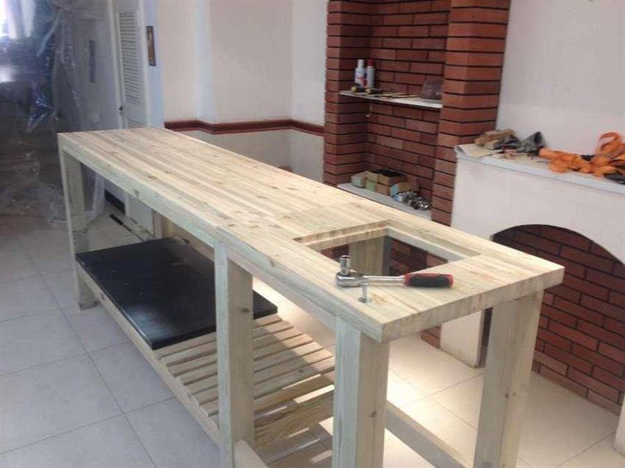 Столешницу стоит изготовить из досок, а сверху накрыть листовым металлом толщиной в 2 мм