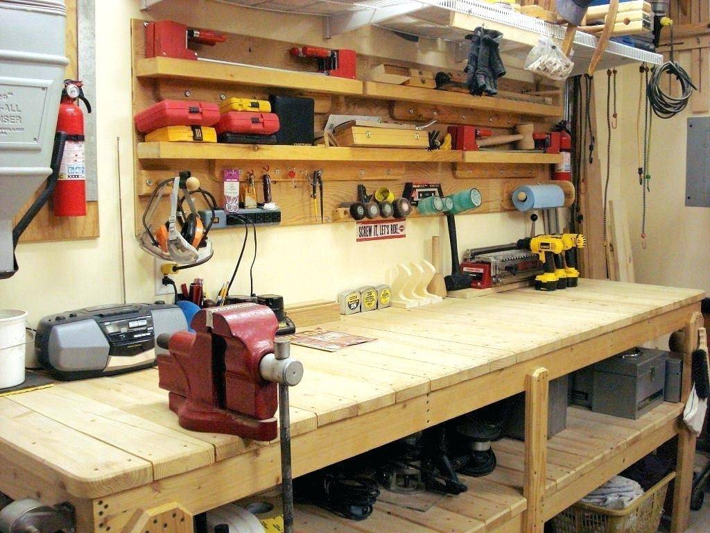 Обязательным атрибутом для выполнения работ, требующих применения инструмента — газового ключа, ножовки, дрели, тисков — является рабочий стол или верстак. Изготовить верстак своими руками с учетом своих пожеланий и потребностей вполне по силам большинству хозяев при наличии нужных материалов и инструмента, а выполнить задачу обустройства личного рабочего места проще владельцам гаражей.