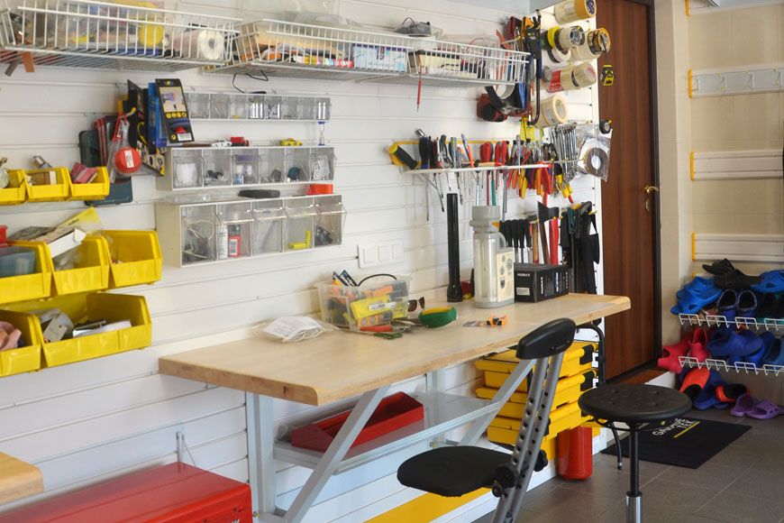 Хранение. Из-за ограниченности пространства на верстак возлагается еще одна важная задача — обеспечение удобных условий хранения. Правильный верстак используется не только в качестве рабочего стола, но и как удобное вместилище расходных материалов, запчастей и инструментов.