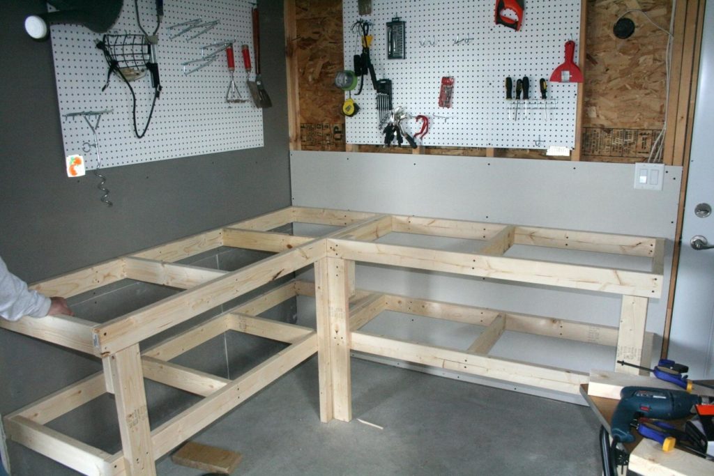 При недостаточной опытности, лучше выбрать в гараж для изготовления своими руками модель деревянного верстака. Сделать конструкцию из бруса, орудуя дрелью и электролобзиком значительно проще, нежели заниматься сваркой стального уголка.
