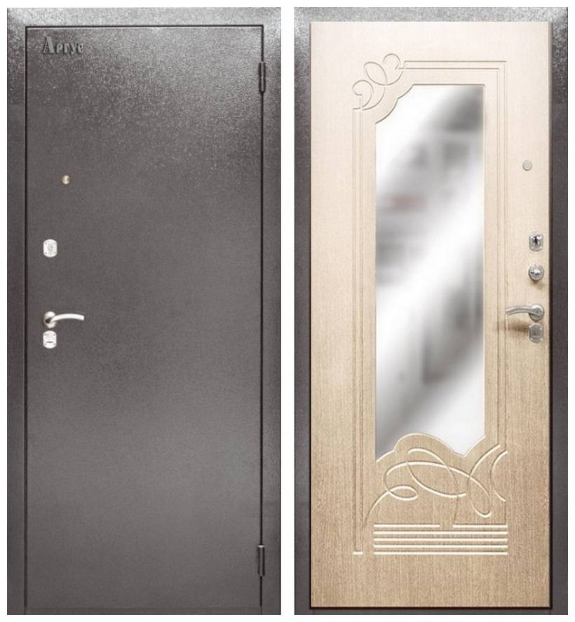 На цену изделия влияет непосредственно толщина листа, фактура, размер и, конечно же, производитель. Самый дешевый вариант — дверь с толщиной листа до 1,2 мм. В таких моделях не устанавливаются дорогие замки и противосъемные штыри. Сам металл очень легко повредить.